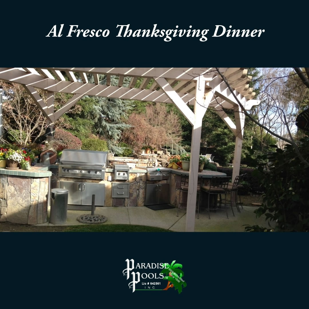 11/16/2023 Al Fresco Thanksgiving Dinner. Enjoy the California endless summer on thanksgiving with a new outdoor living kitchen.